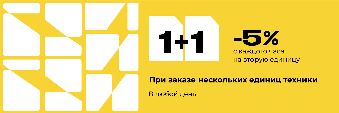 Если для выполнения работ требуется несколько видов спецтехники, акция «1+1» позволяет оптимизировать стоимость заказа.
