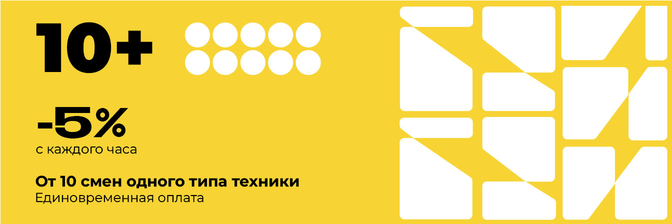 При единовременном заказе спецтехники от 10 смен и оплате одним платежом предоставляется скидка 5% на стоимость услуг.